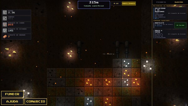 Quebre seus primeiros blocos com as mãos. Extraia minério bruto. Funda-o em lingotes. Reinvista. E recomece maior, mais fundo, mais rápido.