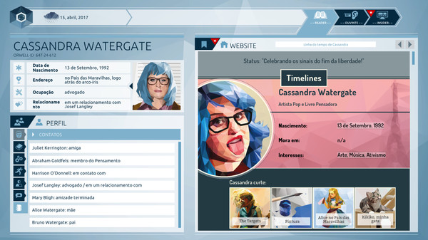 Mas serão essas pessoas realmente terroristas? O que as informações que você revela para Orwell dizem sobre eles? E se você descobrir coisas sobre eles que nem mesmo seus entes queridos sabem? Qual é o preço real de manter a segurança que a Nação almeja?